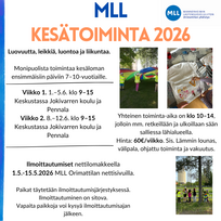 MLL jäsenenä tuet tärkeää toimintaa ja saat jäsenalennuksia paikallisesti ja valtakunnallisesti. Jäsenmaksu on 30€/vuosi (2026). Voit liittää myös perheen alaikäiset lapset ja nuoret jäseniksi ilman erillistä maksua. Voit liittyä jäseneksi täältä .