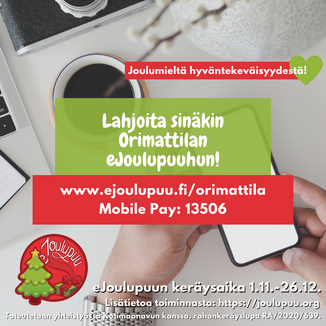 - Lisätietoa ja linkki e-Joulupuu Orimattilan keräykseen: https://orimattila.joulupuu.org