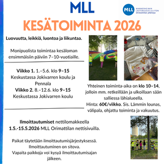 - Kesätoiminnan numero on sama kuin Jokivarren Iltapäivätoiminnan p. 0400 399 791.
